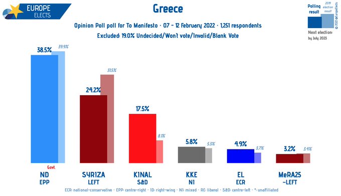 Utgångstipset är således att Ny Demokrati får regera vidare efter ett val, men med ett svagare väljarstöd. Vad ligger bakom detta? Hanteringen av pandemin, hanteringen av den extrema värmen och de förödande bränderna sommartid, och misslyckandet med att röja snö och hantera följderna av ett kraftigt snöoväder som inträffade nyligen pekas ut som substantiella händelser som bidragit till att gröpa ur stödet för regeringen.