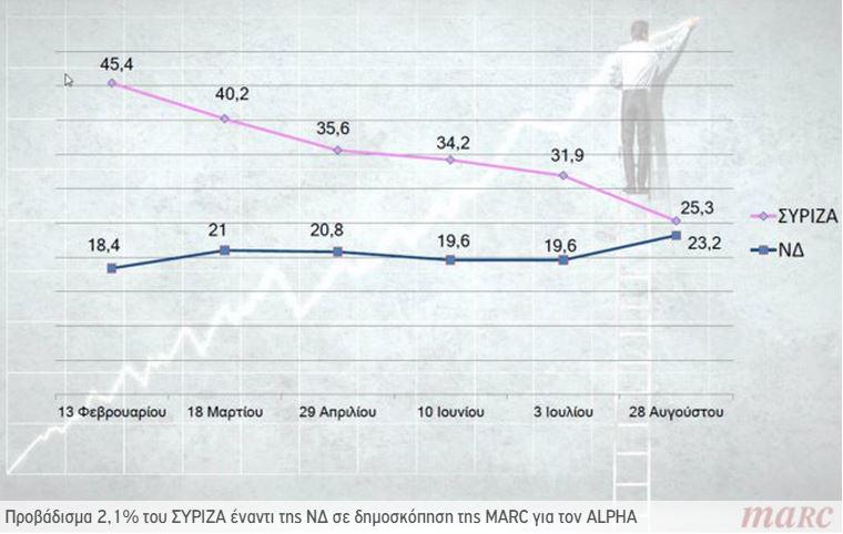 Beskedet är dock ett tecken på en växande kris inom SYRIZA och särskilt för Alexis Tsipras. Sedan Tsipras meddelat sin avgång som premiärminister har en kedjereaktion satt igång. Först kom utbrytningen av Folklig enhet, sedan kom rapporter om inre konflikter inom SYRIZA och idag kom så Konstantopoulous besked. Mer bekymmersamt för Tsipras och för SYRIZA är att en rad opinionsundersökningar visar på att SYRIZA tappar allt mer i opinionen. Gapet mellan SYRIZA och Ny Demokrati är för närvarande nere på ett par procentenheter, enligt mätningen ovan som hämtats från MARC. Med tre veckor kvar till valet är det tydligt att Alexis Tsipras möter sin största kris hittills som partiledare.